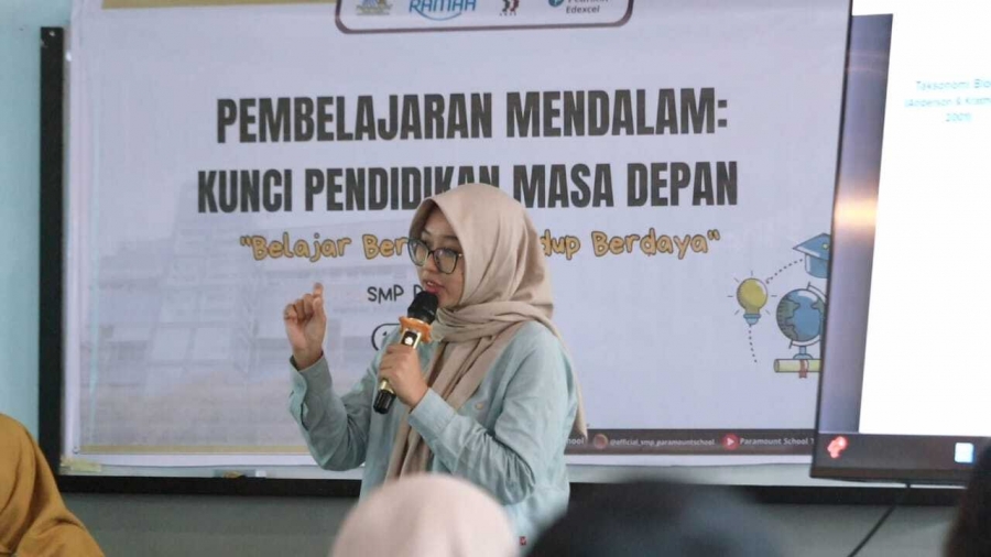 Pelatihan pembelajaran mendalam yang dilakukan di SMP Paramount tanggal 13 September 2025 sesuai dengan tema “Kunci kehidupan masa depan”. Pembelajaran mendalam bagi guru menjadi salah satu upaya penting dalam meningkatkan kualitas pendidikan. Pembelajaran mendalam tidak hanya berfokus pada hafalan atau pemahaman permukaan, tetapi lebih pada bagaimana peserta didik mampu menghubungkan konsep, berpikir kritis, serta mengaplikasikan pengetahuan dalam kehidupan nyata. Melalui pelatihan ini, guru didorong untuk mengubah paradigma mengajar dari sekadar penyampaian materi menjadi fasilitator yang membimbing siswa dalam menemukan makna belajar.